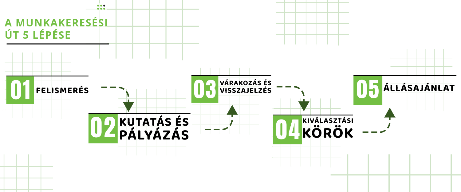 2. Kutatás és pályázás: Itt már álláslehetőségeket kutat, információkat gyűjt a cégekről és pozíciókról, pályázatokat nyújt be.