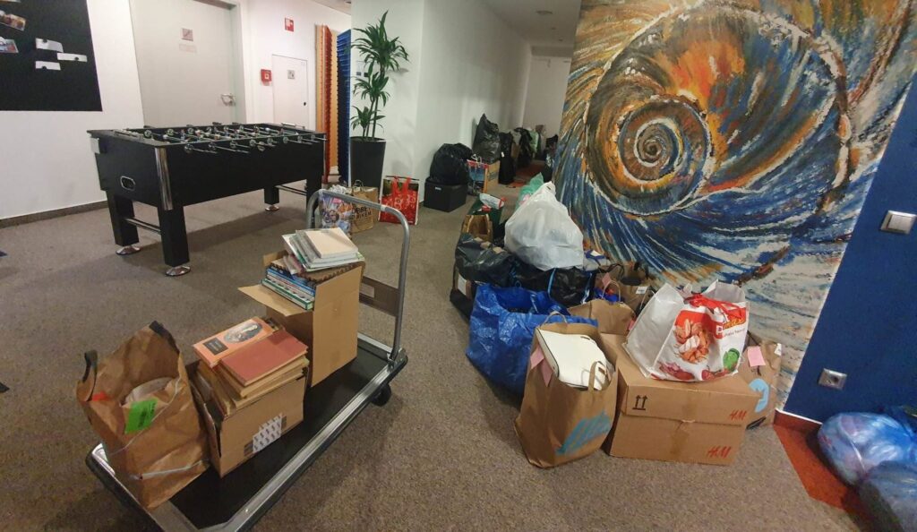 Az iroda egy része szép lassan megtelt dobozokkal zsákokkal: benne tartós élelmiszerek, tisztítószerek, ruhaneműk, cipők, könyvek, játékok, online tanulást segítő elektronikai felszerelések, babakelengye, háztartási eszközök, és az ünnepek közeledtével szaloncukor is jutott mindenhova.